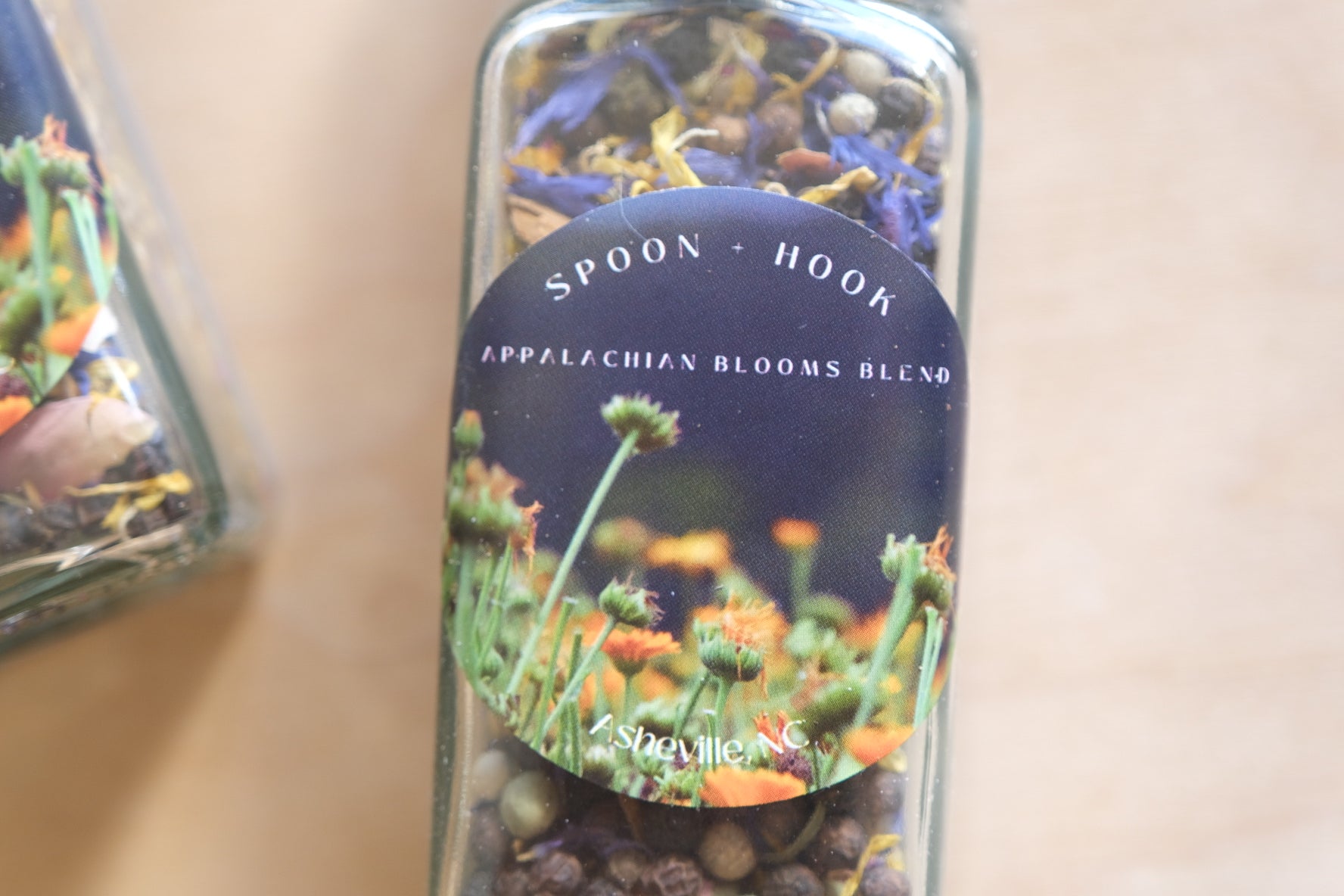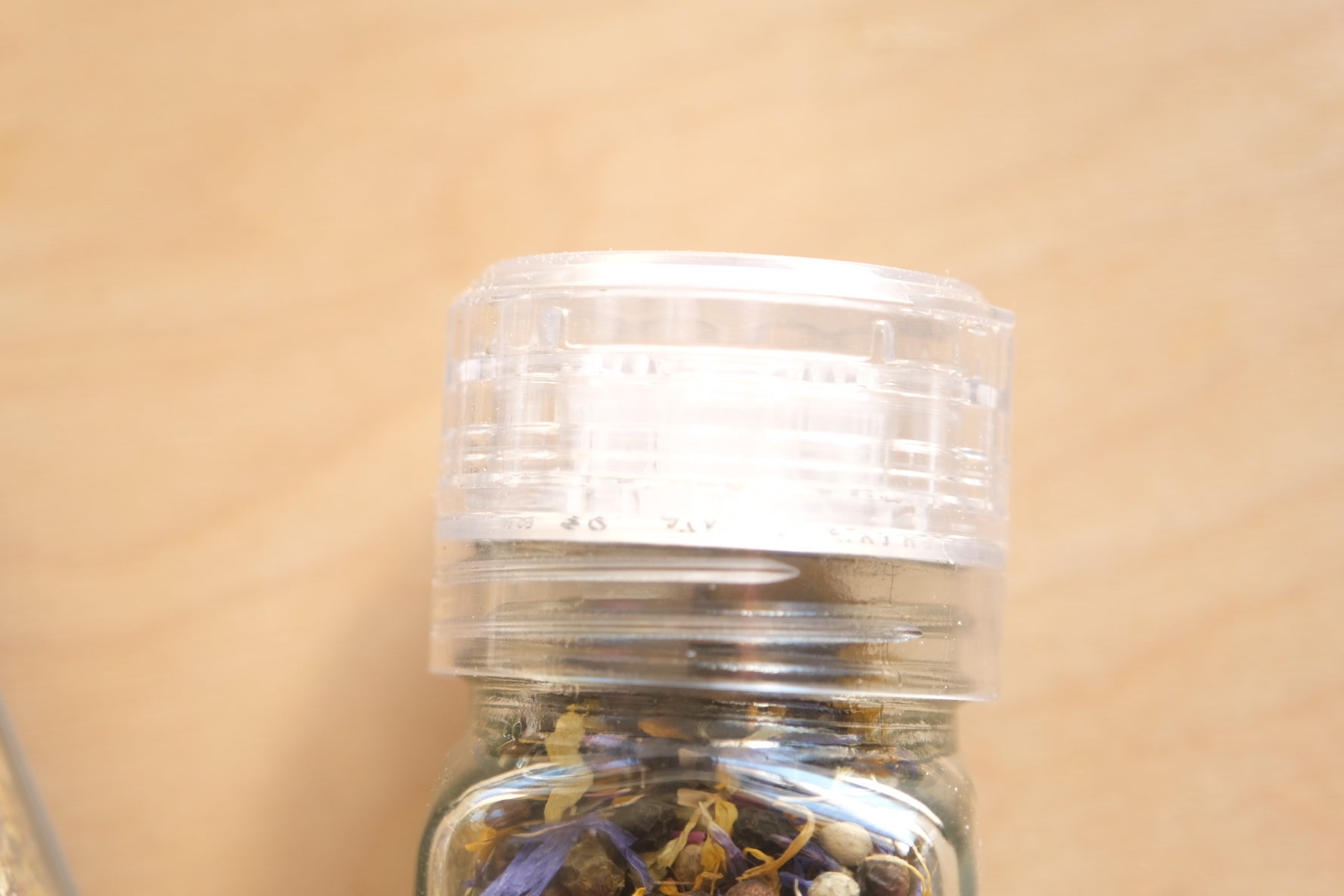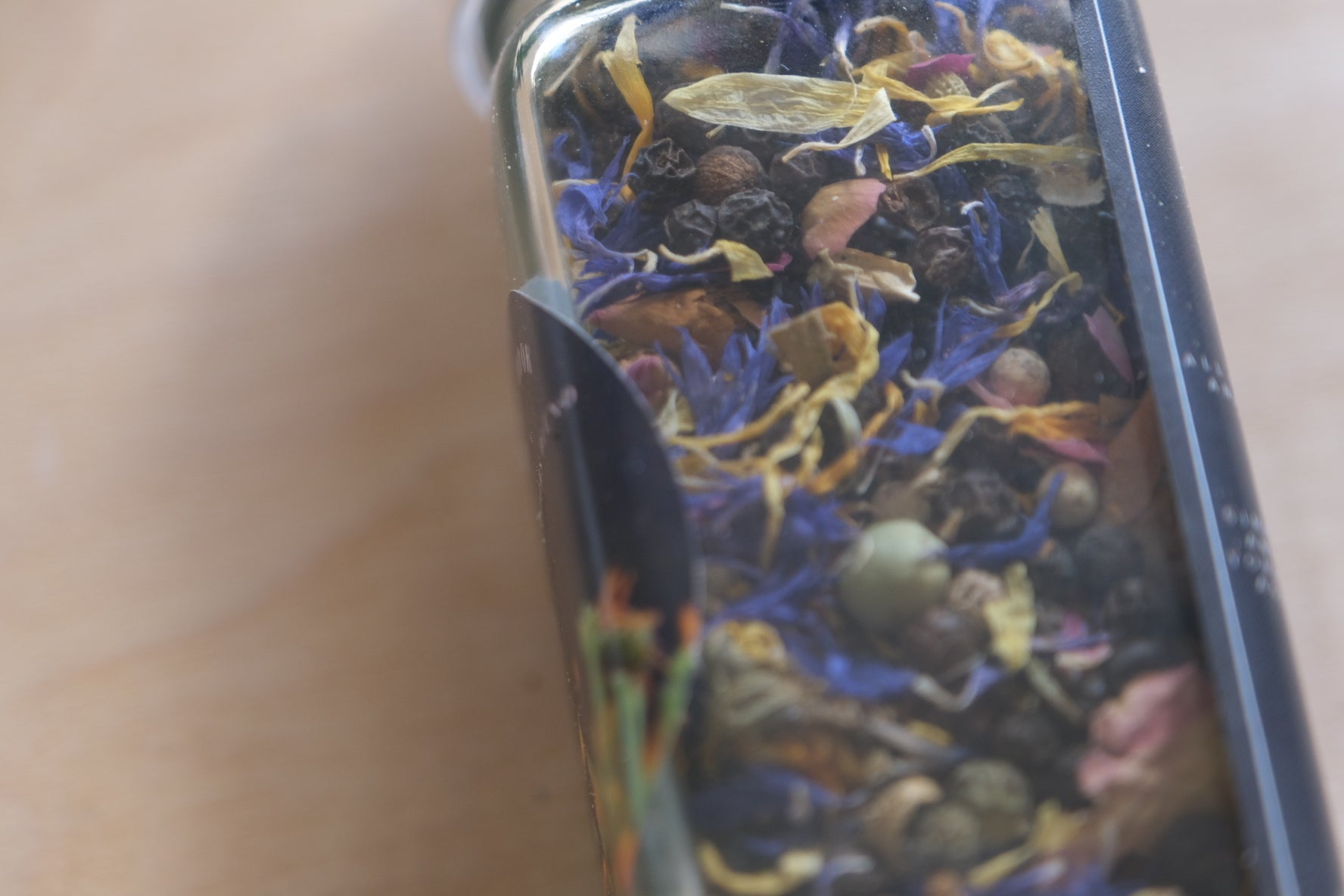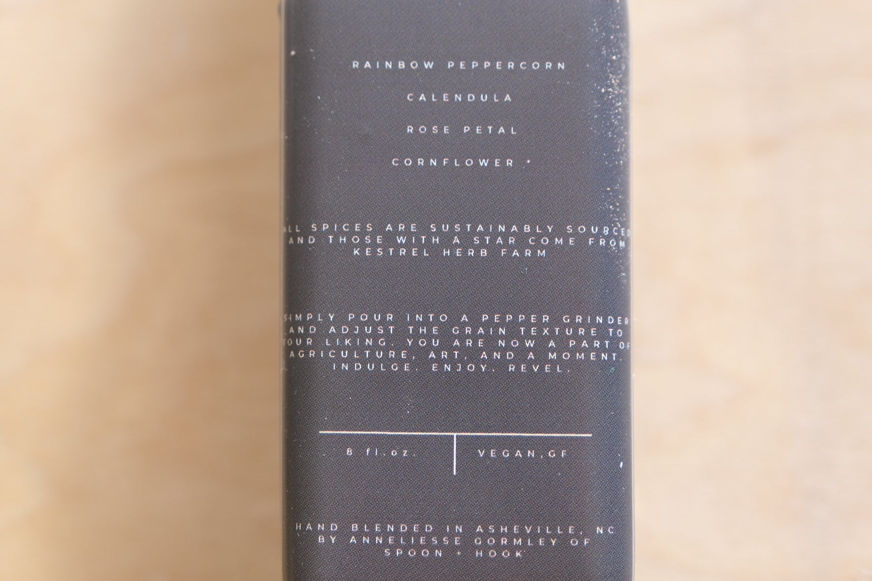 This is a reusable spice mill filled with organic rainbow peppercorns, coneflower from kestrel herb farm, organic roses and calendula from my garden and sourced locally. Made and loved in Asheville, NC.