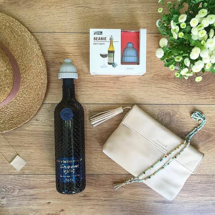 Bring winter magic to your wine nights with the Beanie Bottle Stoppers – a set of 2 wooly hat design wine stoppers made of food-grade silicone. These quirky and funny bottle stoppers seal wine bottles tightly, preserving freshness while adding a playful touch to your barware.