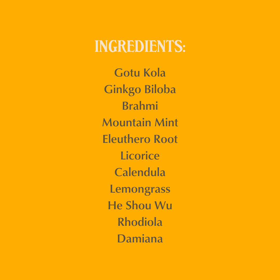 Each of these herbs were chosen with intent to nourish the brain and support cognitive function. Great for anyone looking to sharpen focus and concentration in their daily lives as well as those looking to aid in the decline of memory.