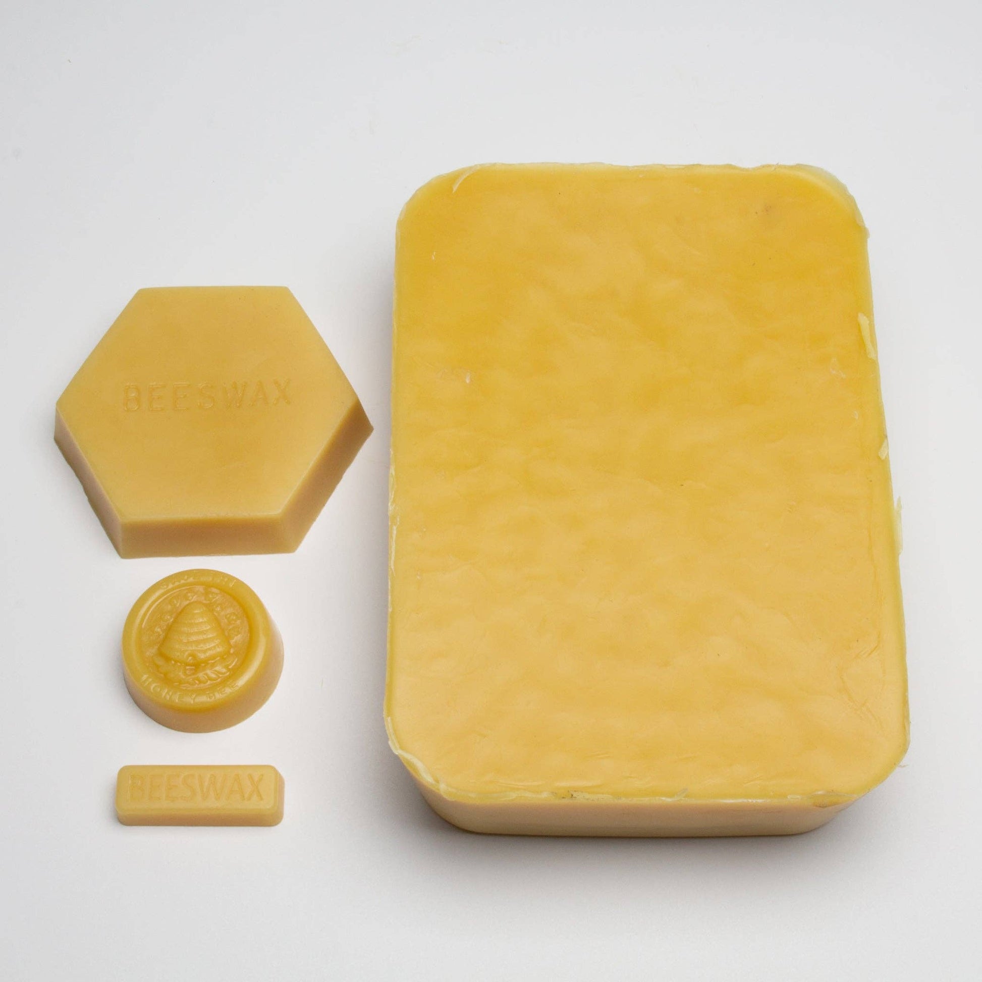 Available in 1oz. Bar, 3oz. “Save The Bees” Rounds, 1 lb. Hexagon Block & in a Bulk Cake (approx. 10 lbs.). Our beeswax is ideal for use in cosmetics, lotions, soaps and for candle making, just to name a few of the hundreds of uses.