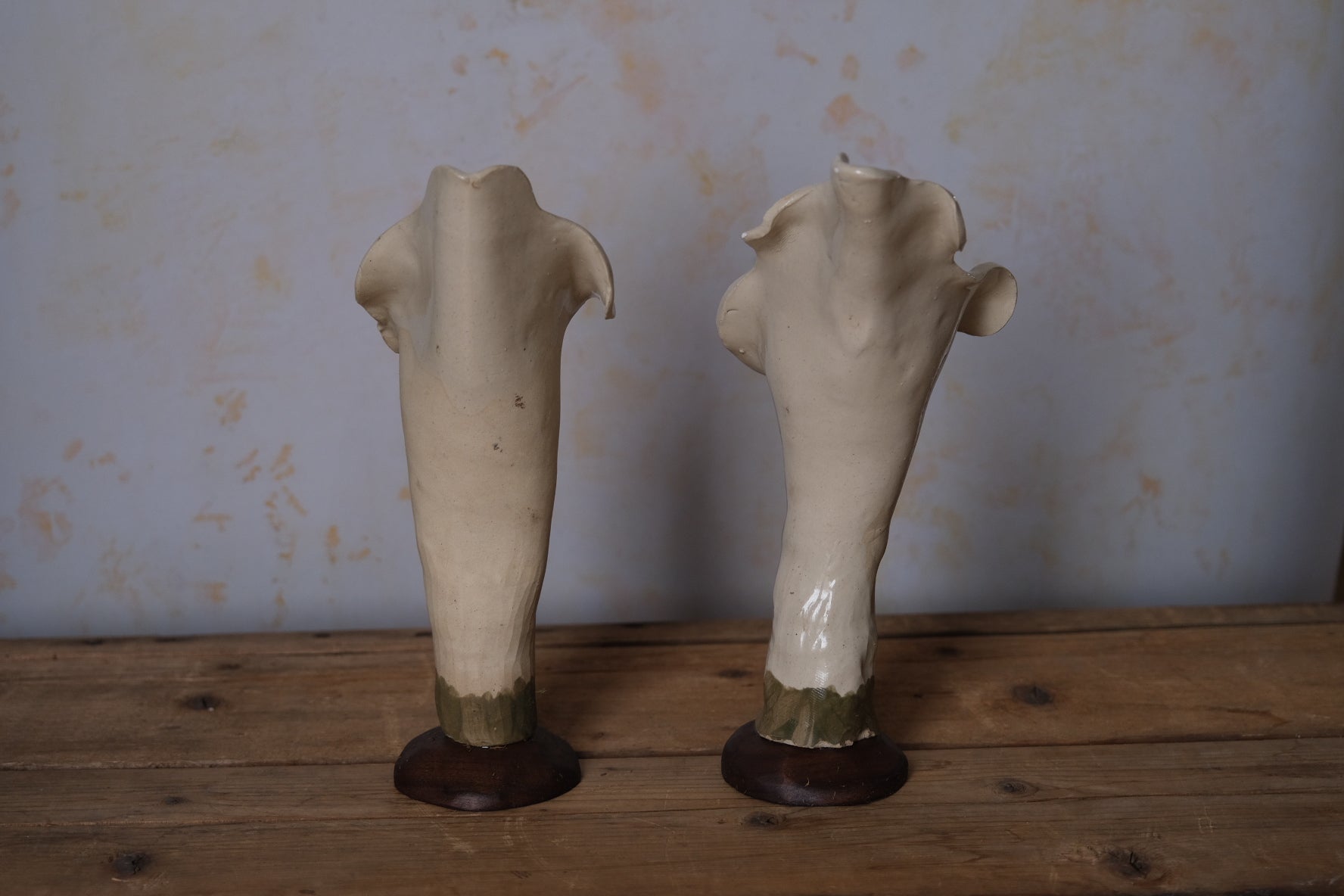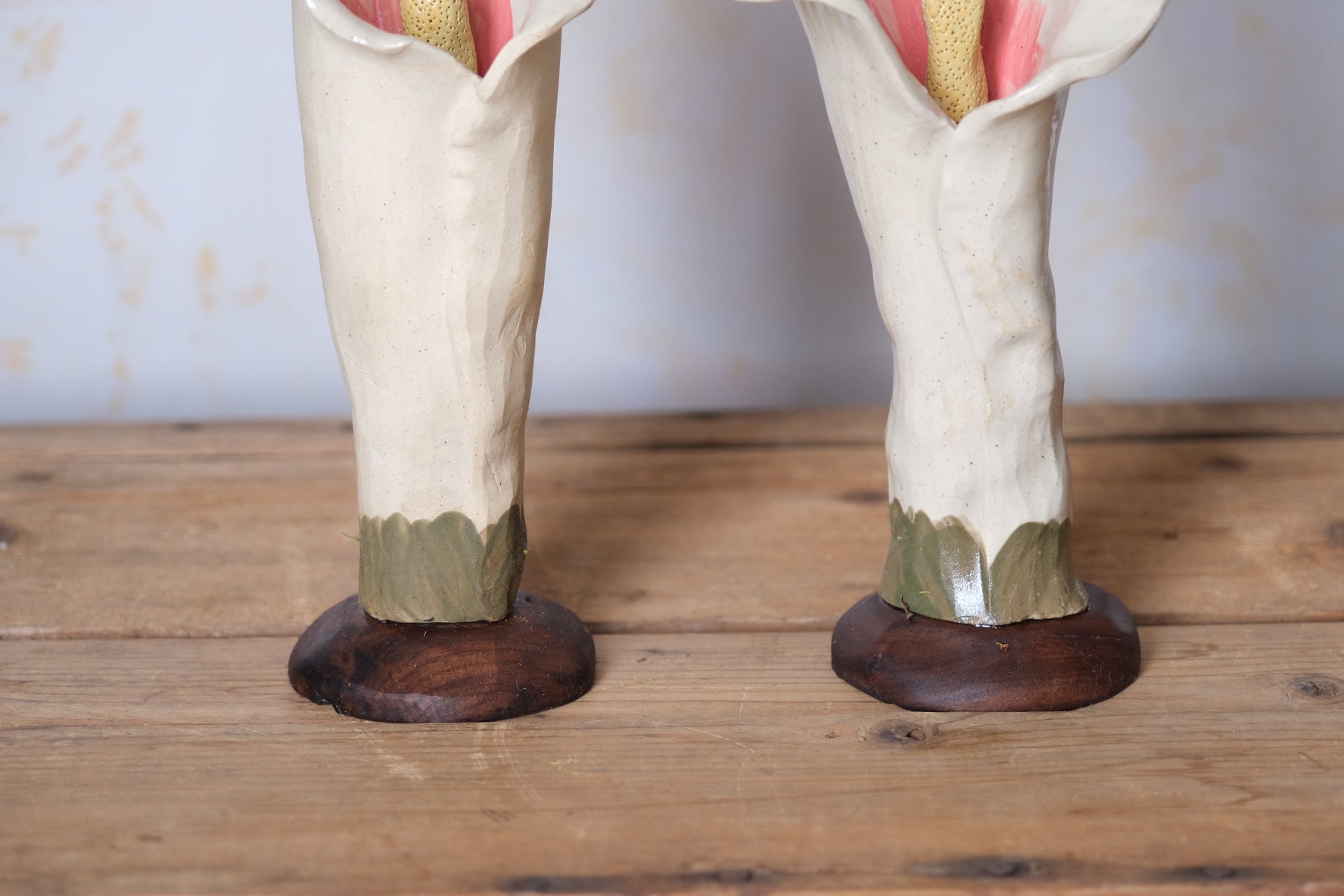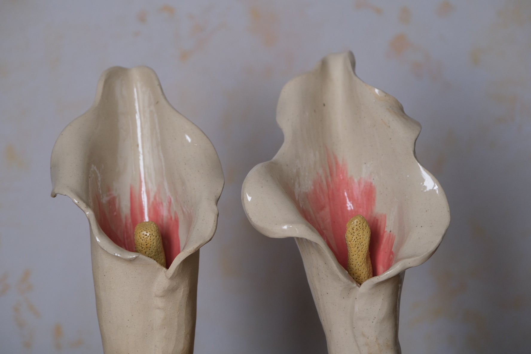 These calla lilys are hand built with walnut bases. Use as champagne flutes, water glasses, vases, sculptures, and anything else your heart can desire. Comes with a set of two.