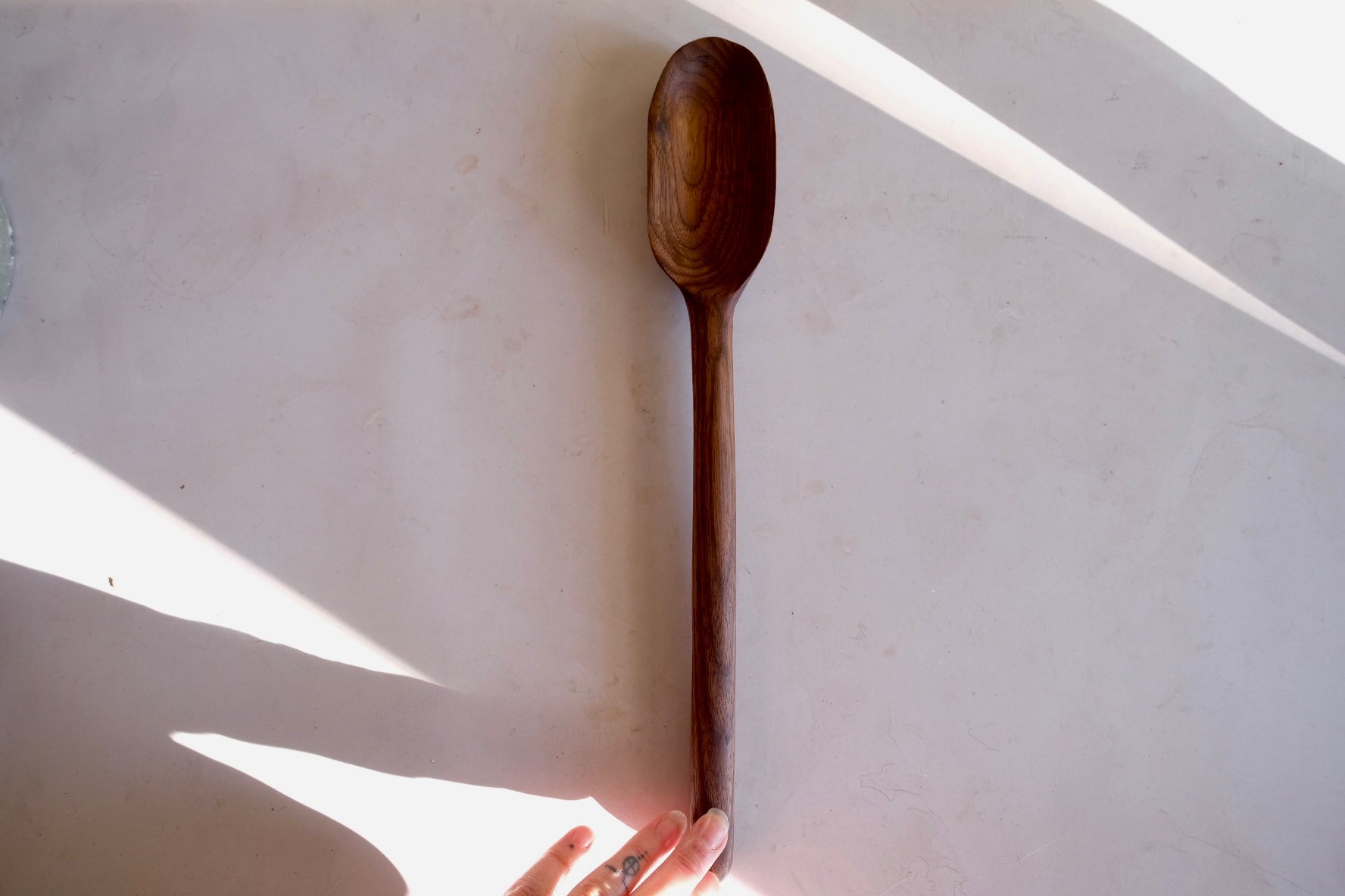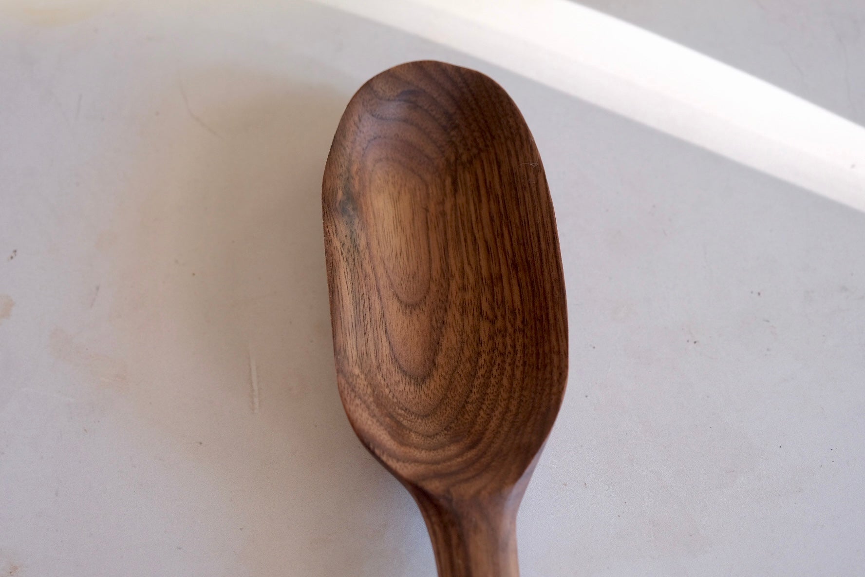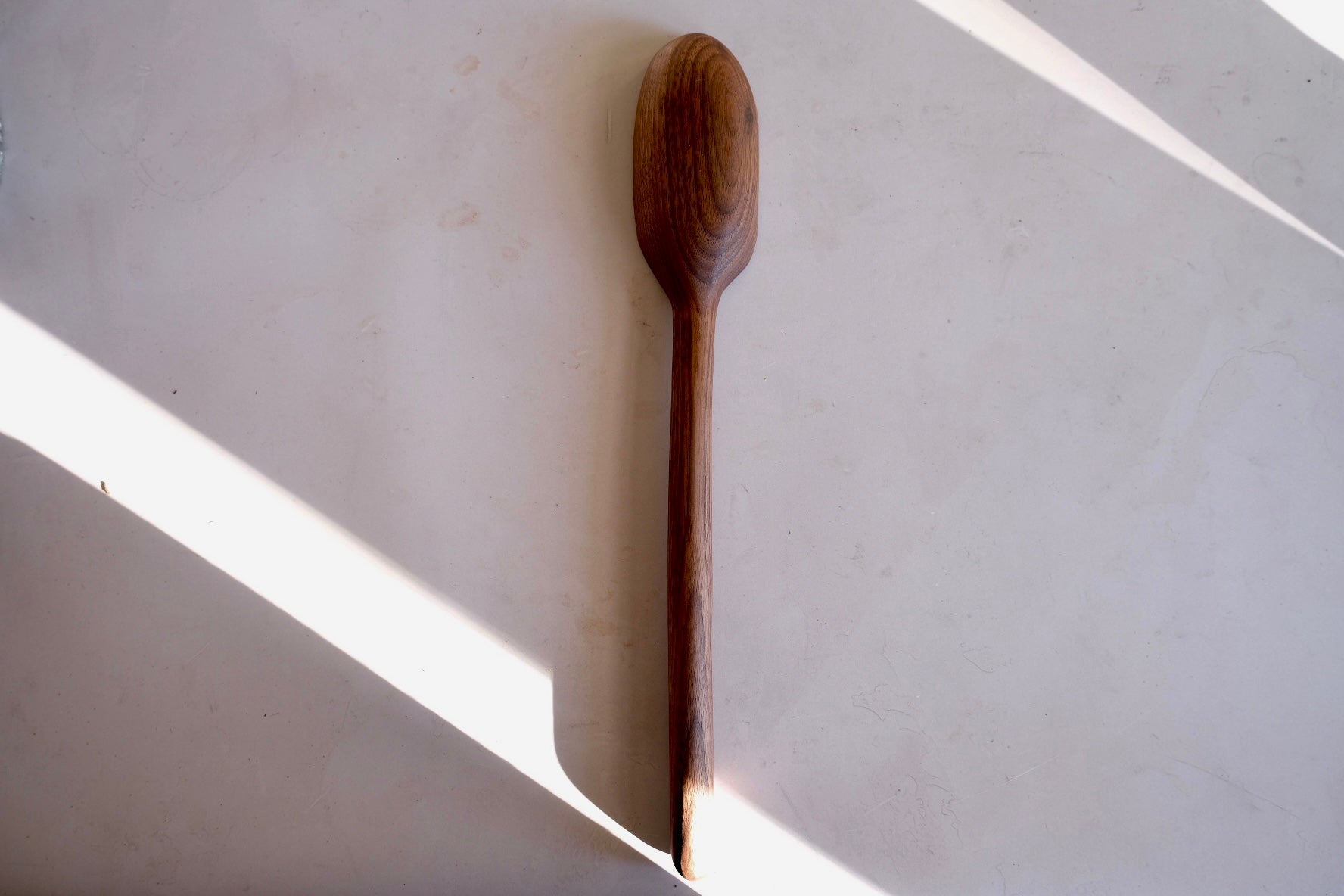 This beauty is your go to for soups, baking, and blending. Made from walnut wood it is sealed using spoon + hook wood care. Please hand wash and towel dry and re-oil as needed.