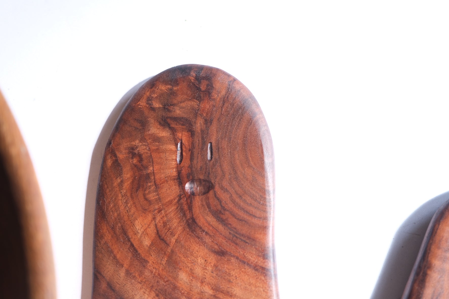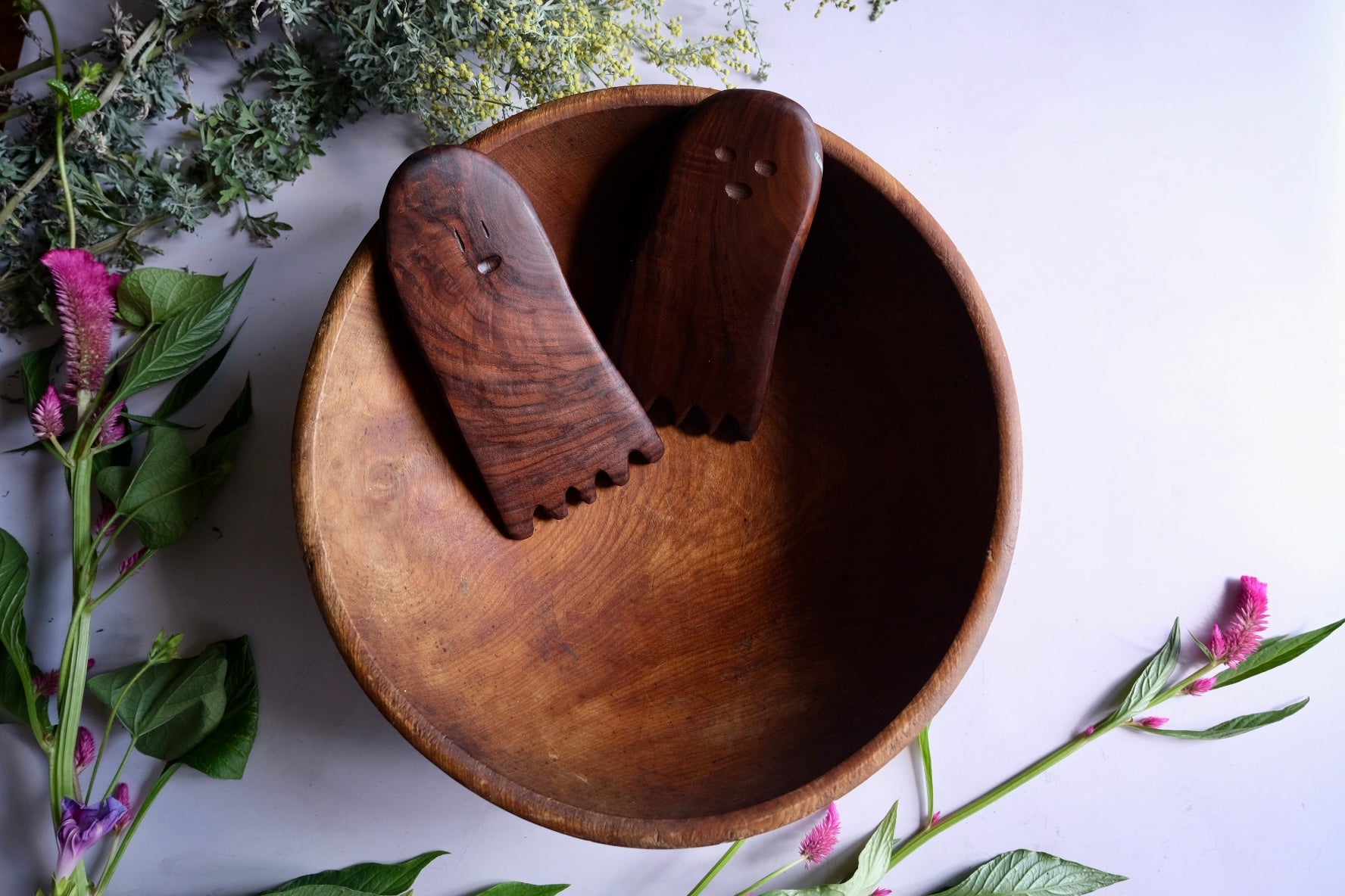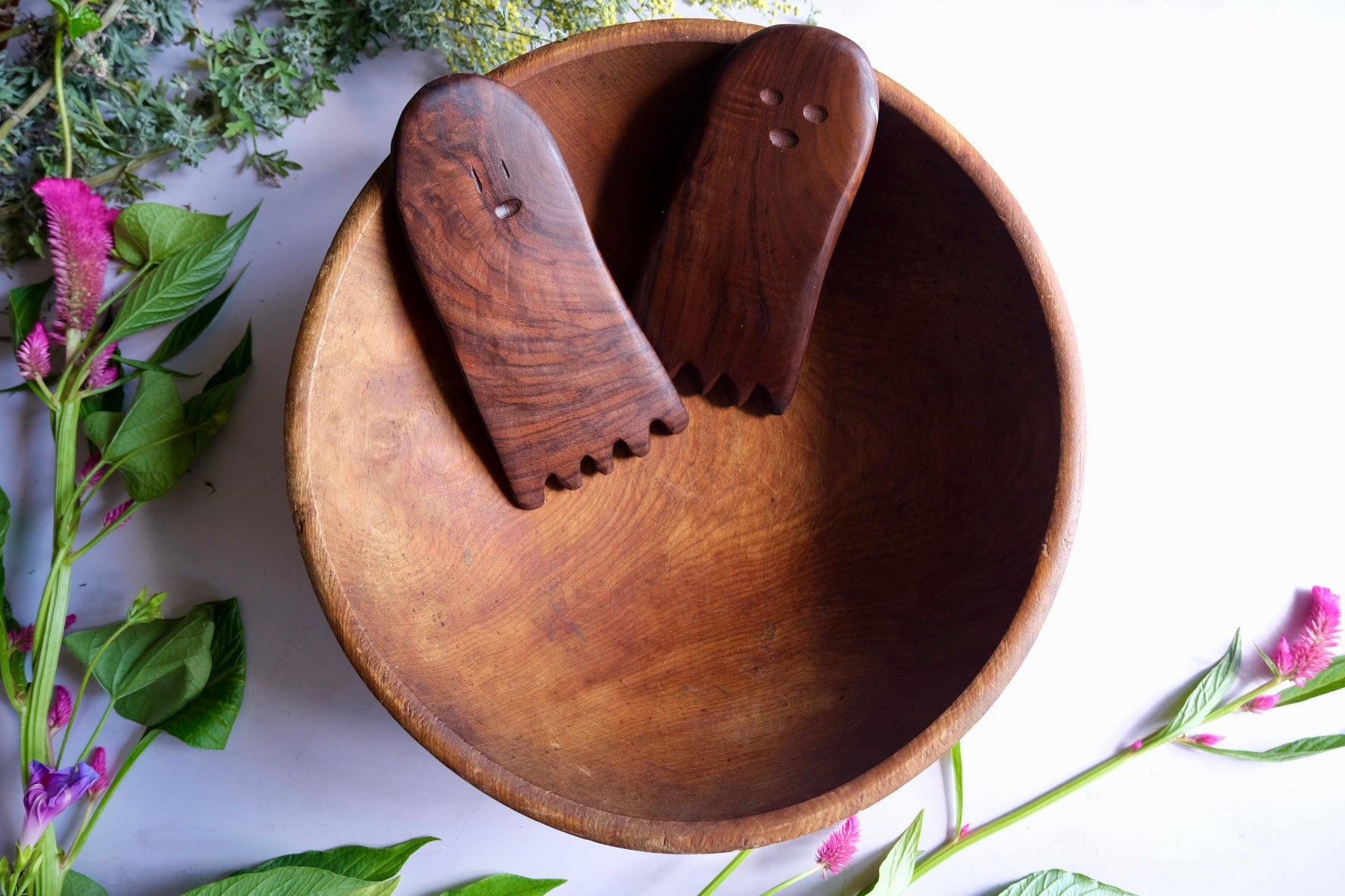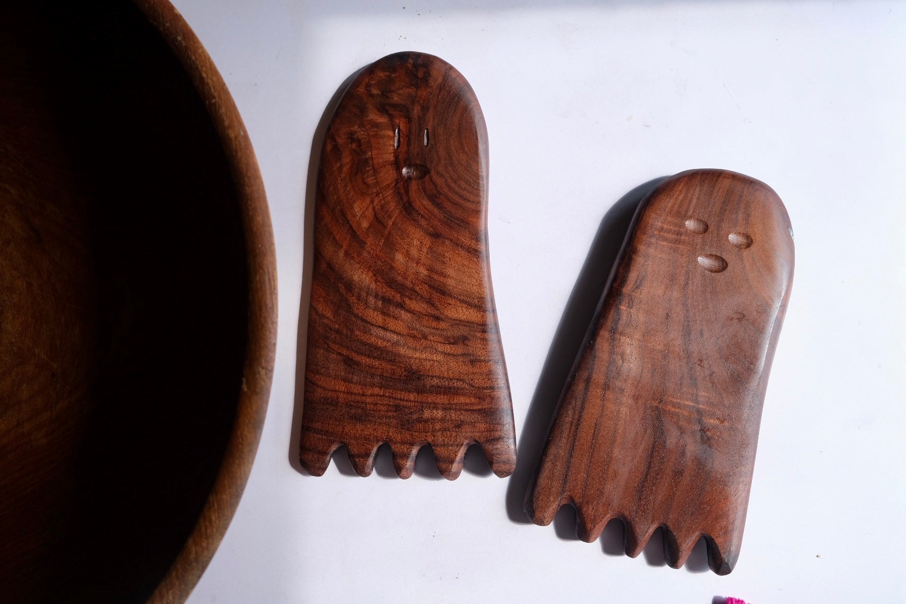This ghosts are made to have the bottoms be a ghoulishly perfect way to scoop and serve salads, sides, and so much more. Made from walnut wood, one has a slightly surprised face carved into it and the other a more content face. Each are sealed using spoon + hook wood care. Please hand wash and towel dry and re-oil as needed.
