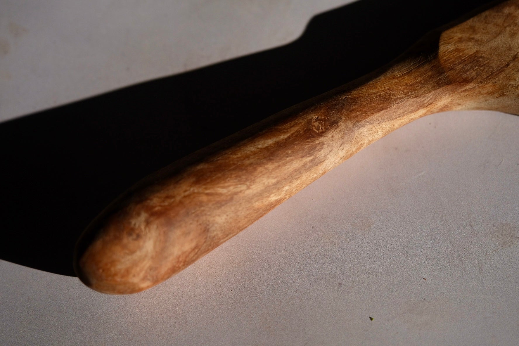 This beauty is made from ambrosia maple wood and sealed using spoon + hook wood care. This is not a piece that is meant to be sharp but more so an ideal spreader for jams, butters, soft cheeses and beyond. Please hand wash and towel dry and re-oil as needed.