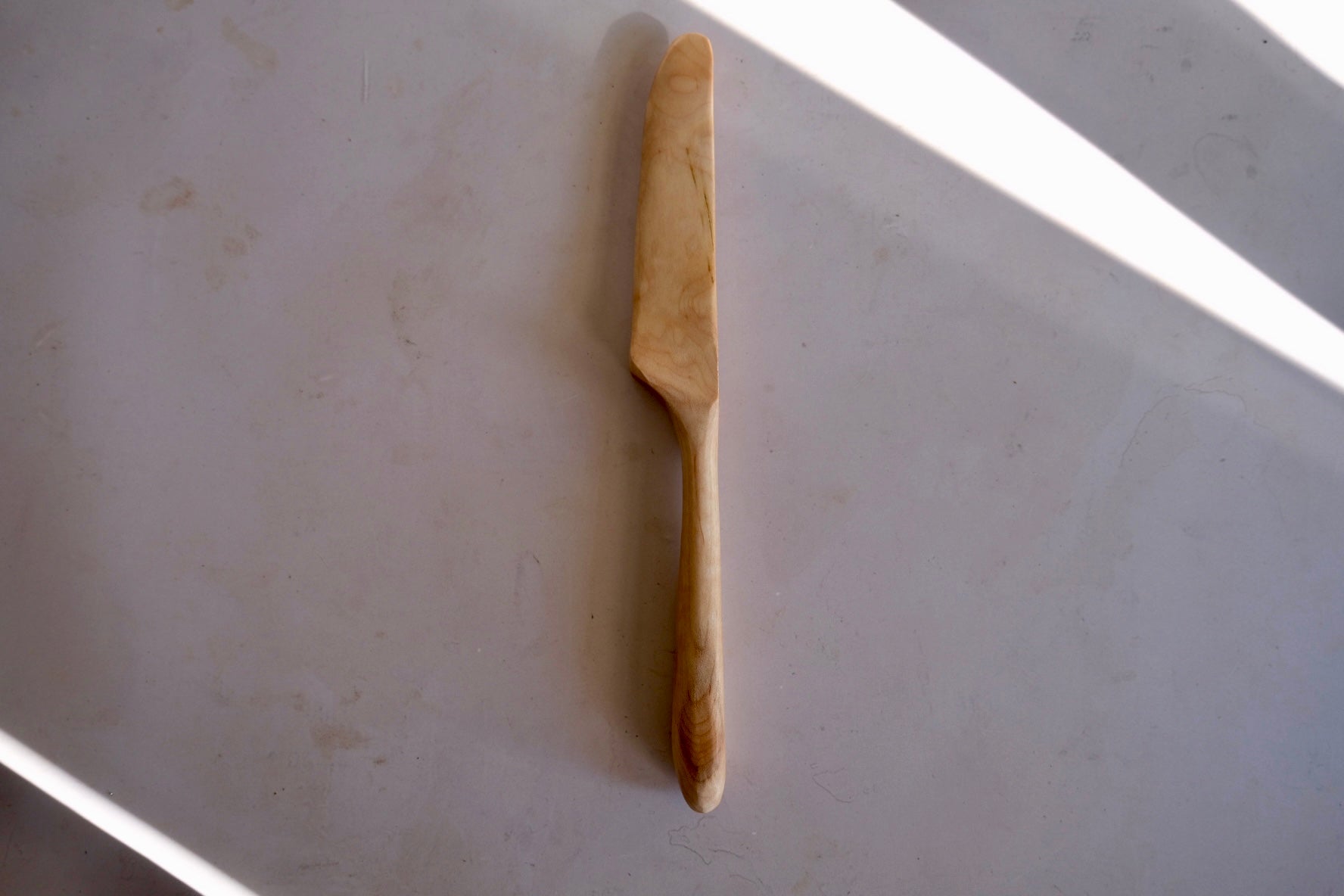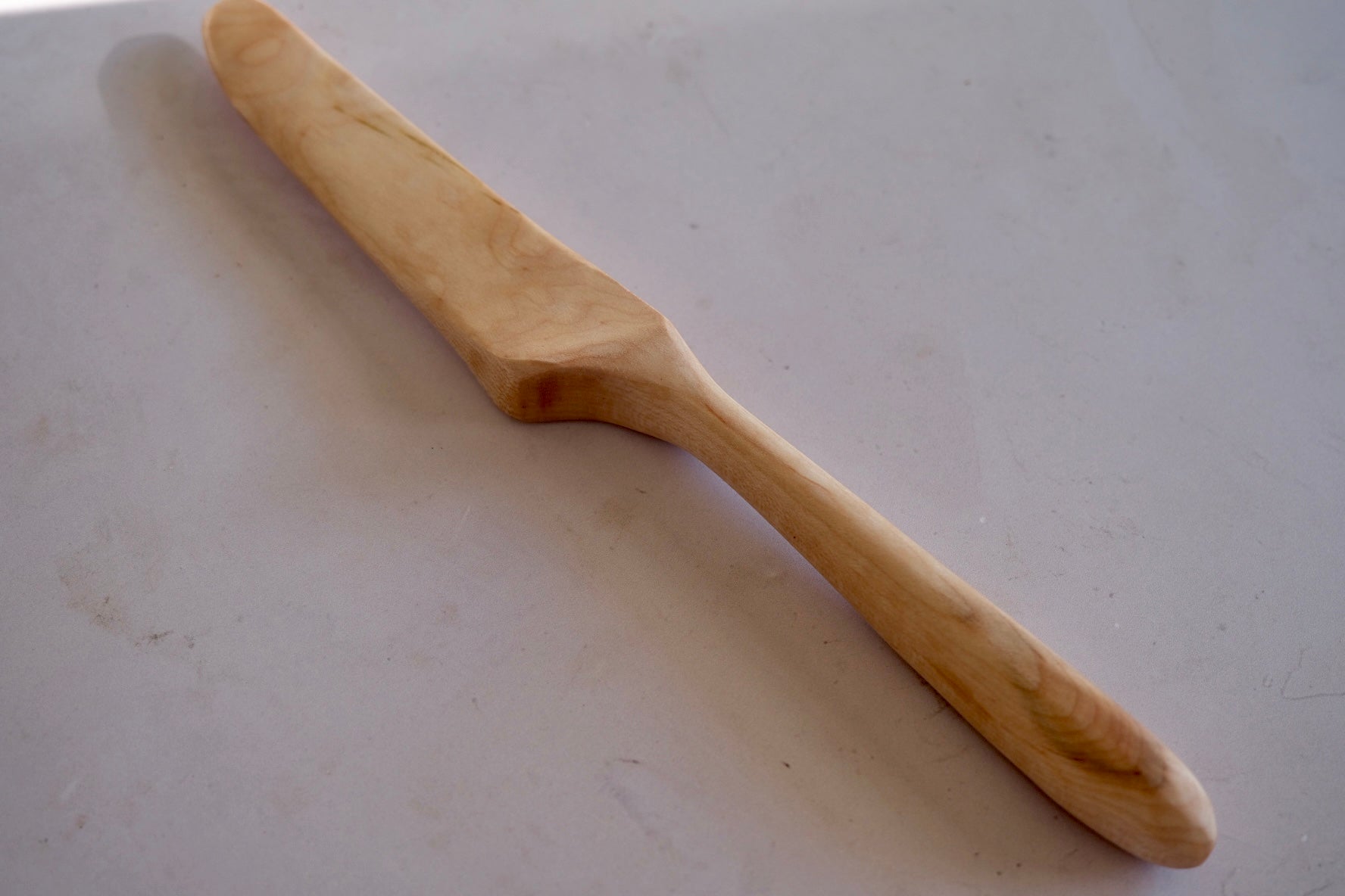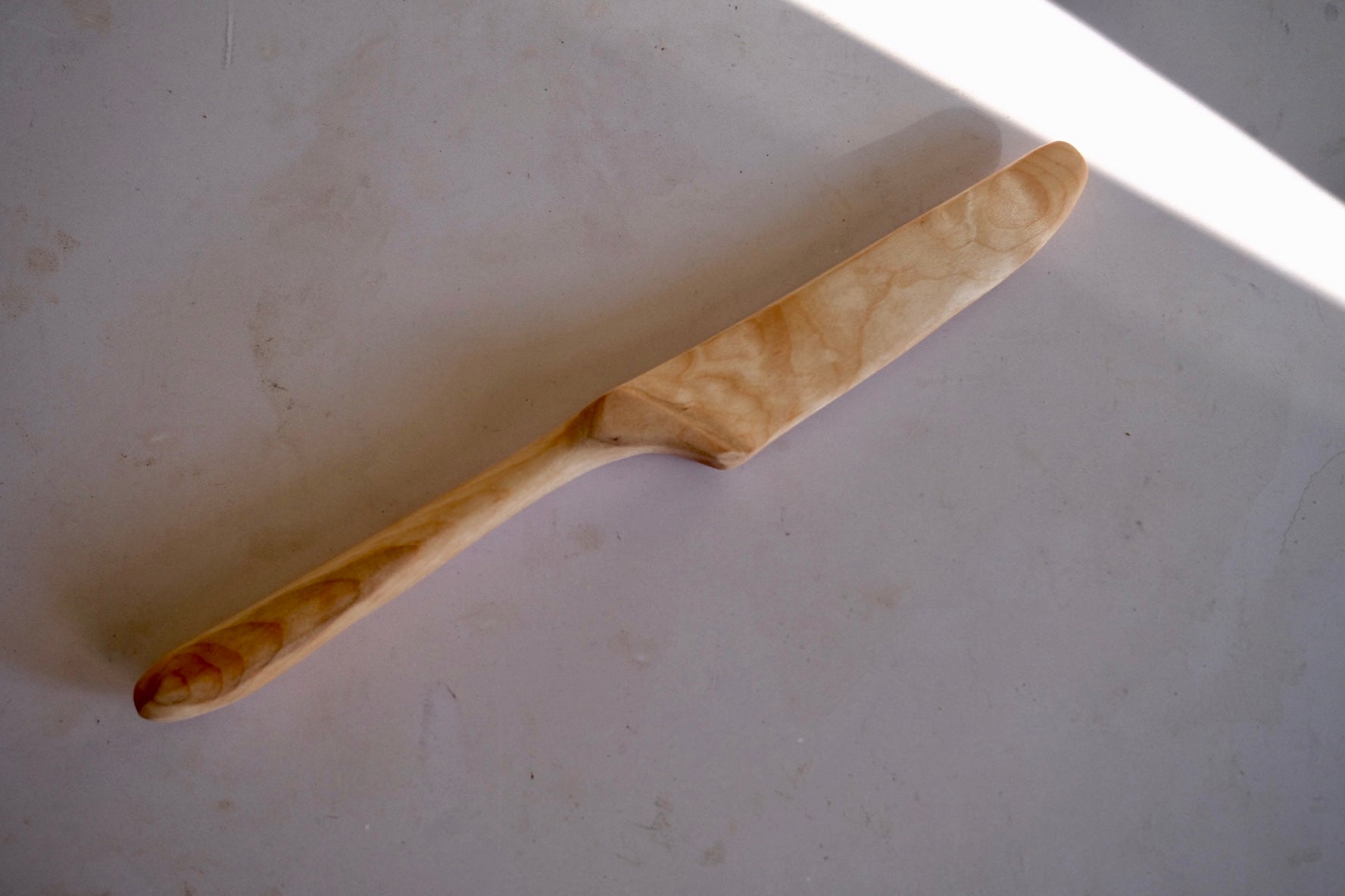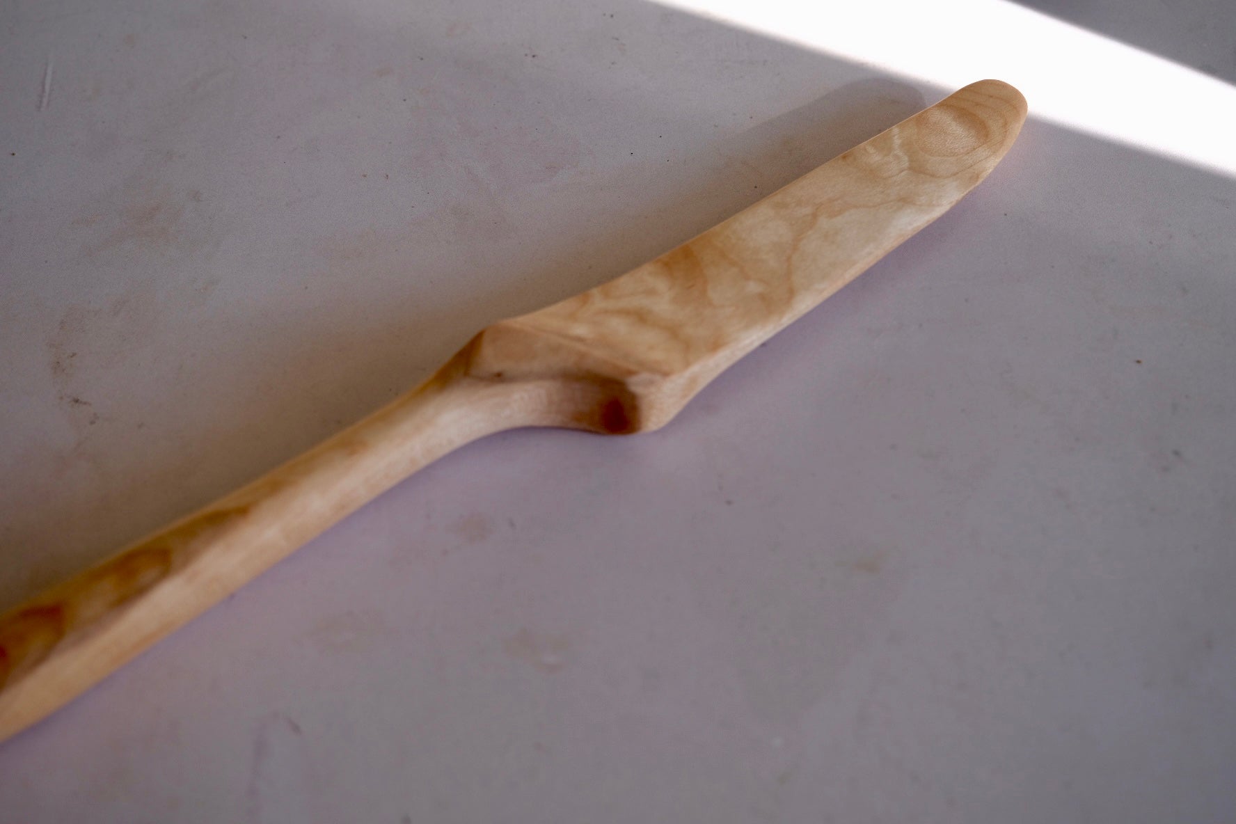 This beautiful knife is made from curly maple and sealed using spoon + hook wood care. Not made to be sharp but more so as a spreader for jams, butters, soft cheeses and beyond. Please hand wash and towel dry and re-oil as needed.