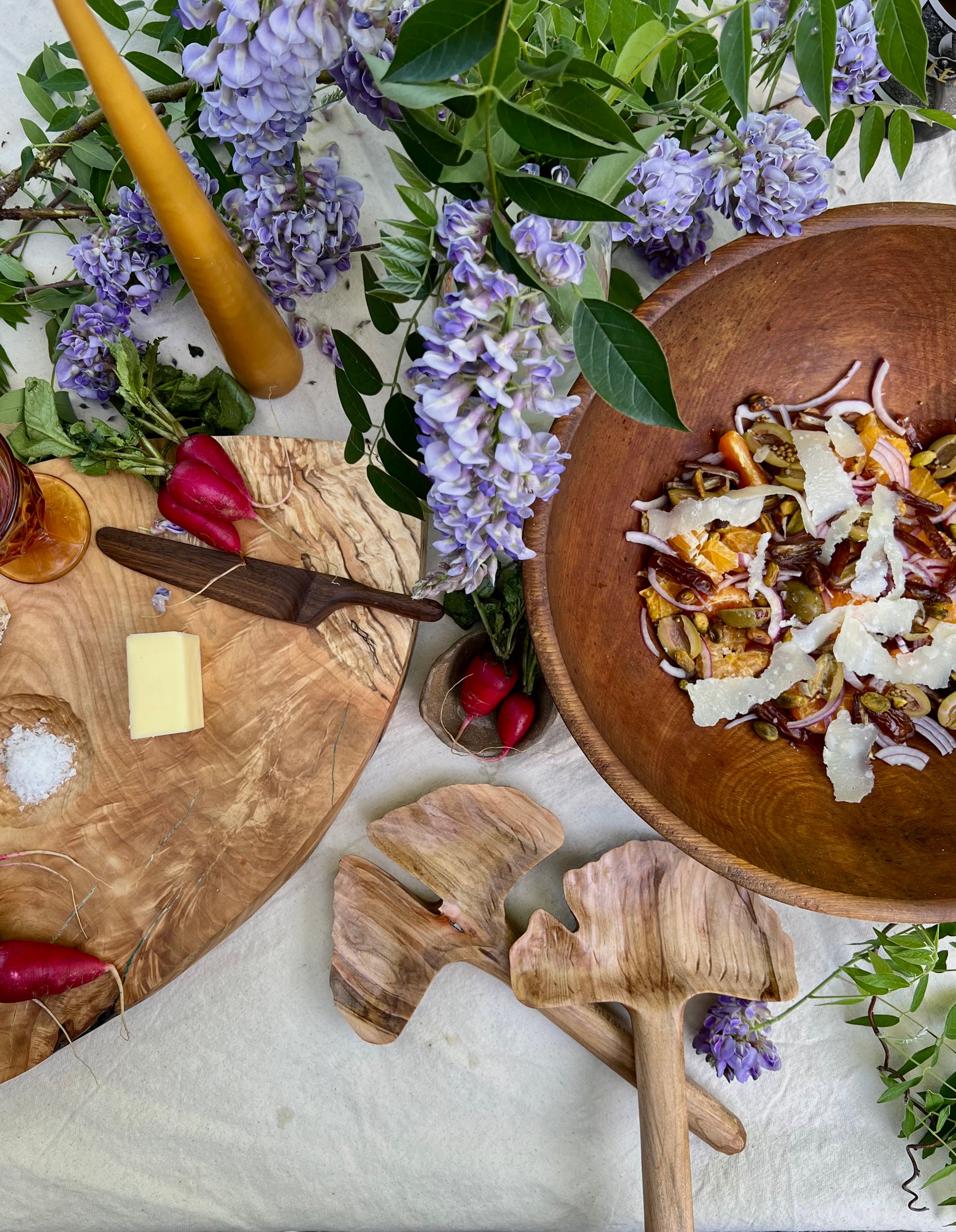 This set is a pre-order option! Please allow 6 weeks to carve and finish. Hand made from ambrosia maple, each piece is sealed using spoon + hook wood care. Please hand wash and towel dry and re-oil as needed.