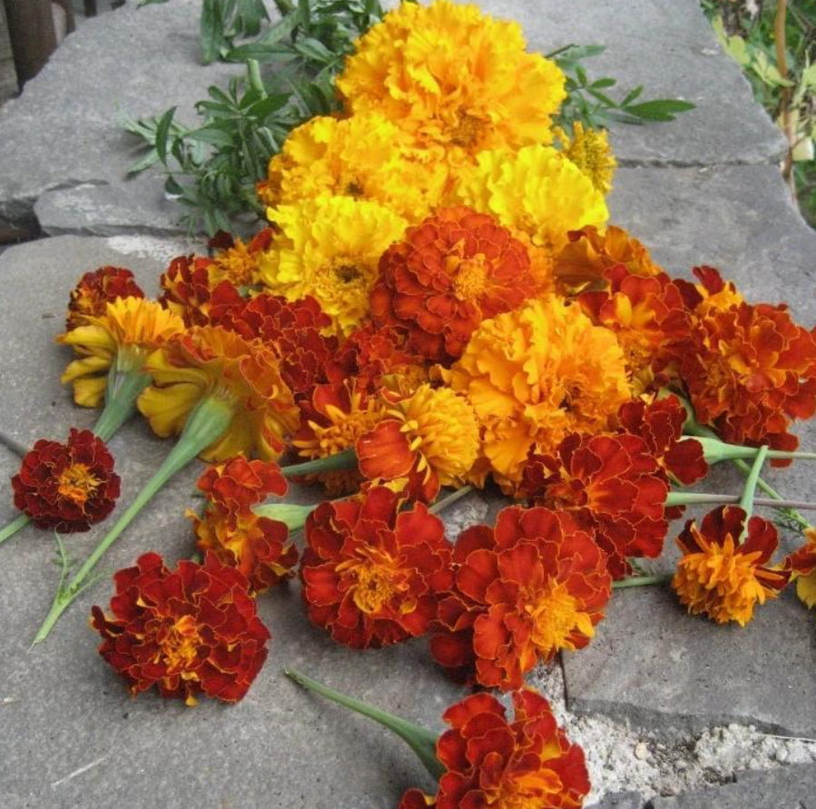 Contains Crackerjack, Petite Mix, Naughty Marietta, and Sparky French marigolds.