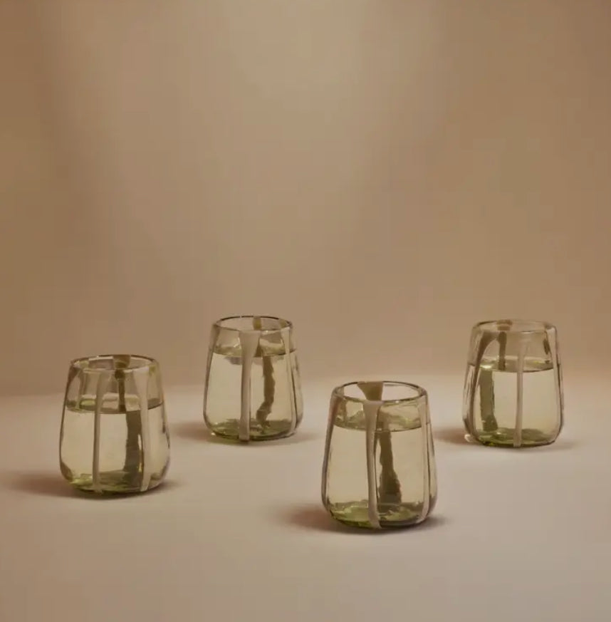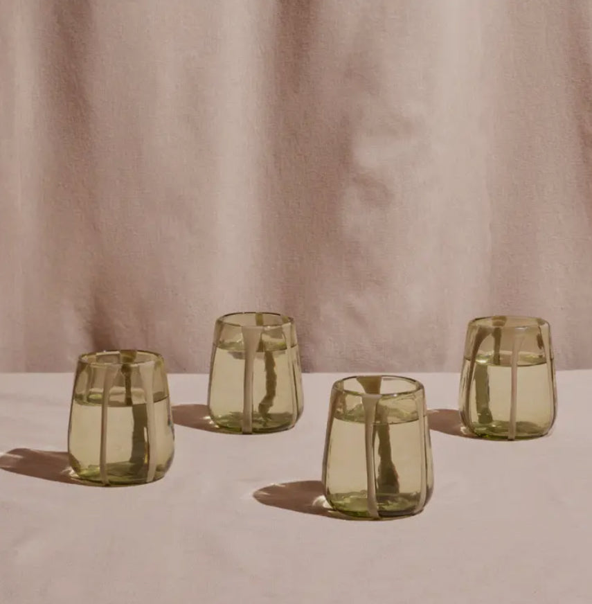 These beautiful mouthblown glasses are 100% recycled and made in Mexico. Will come in a set of four.