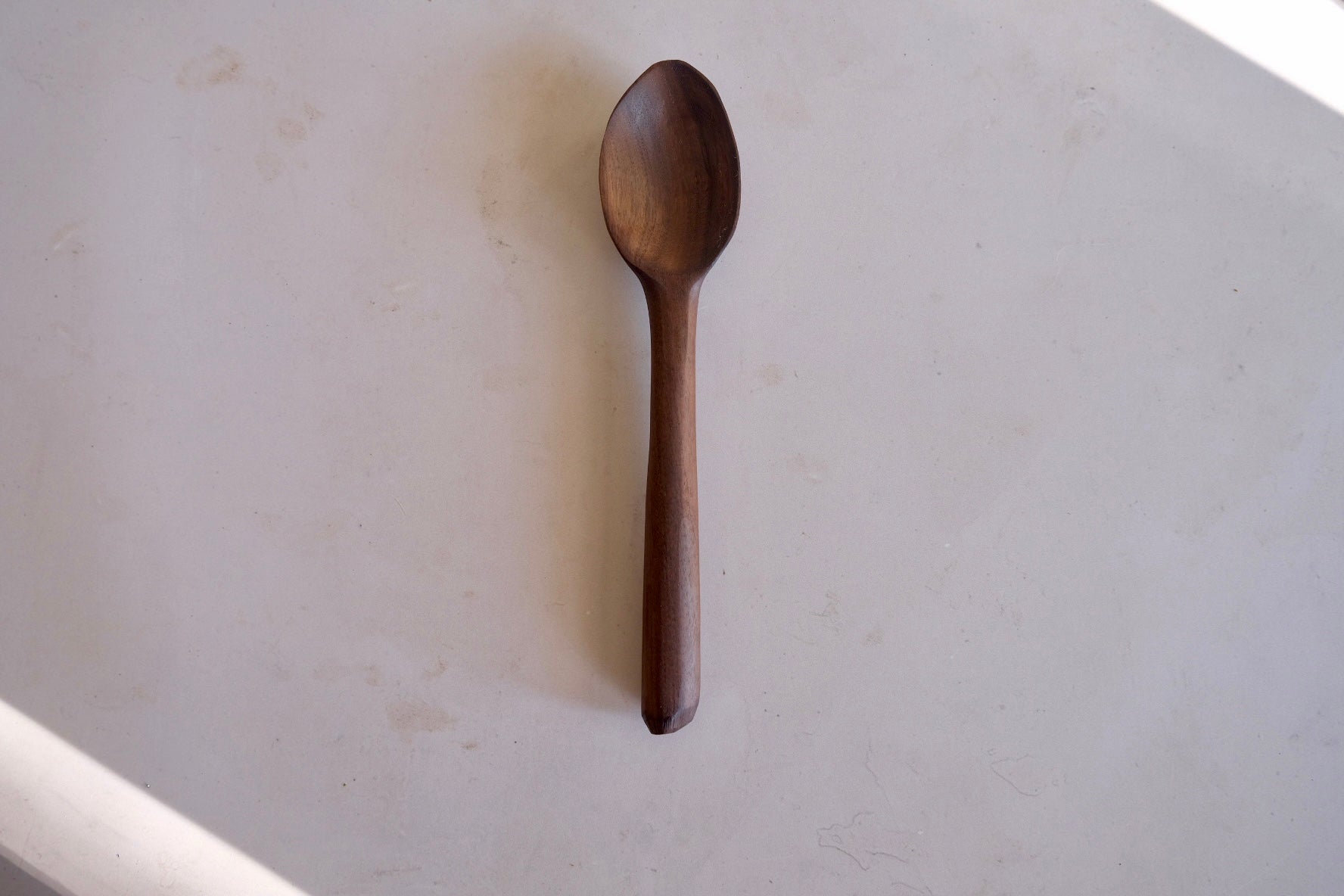 This beautiful spoon is hand carved from walnut wood and sealed using spoon + hook wood care. Please hand wash and towel dry and re-oil as needed.