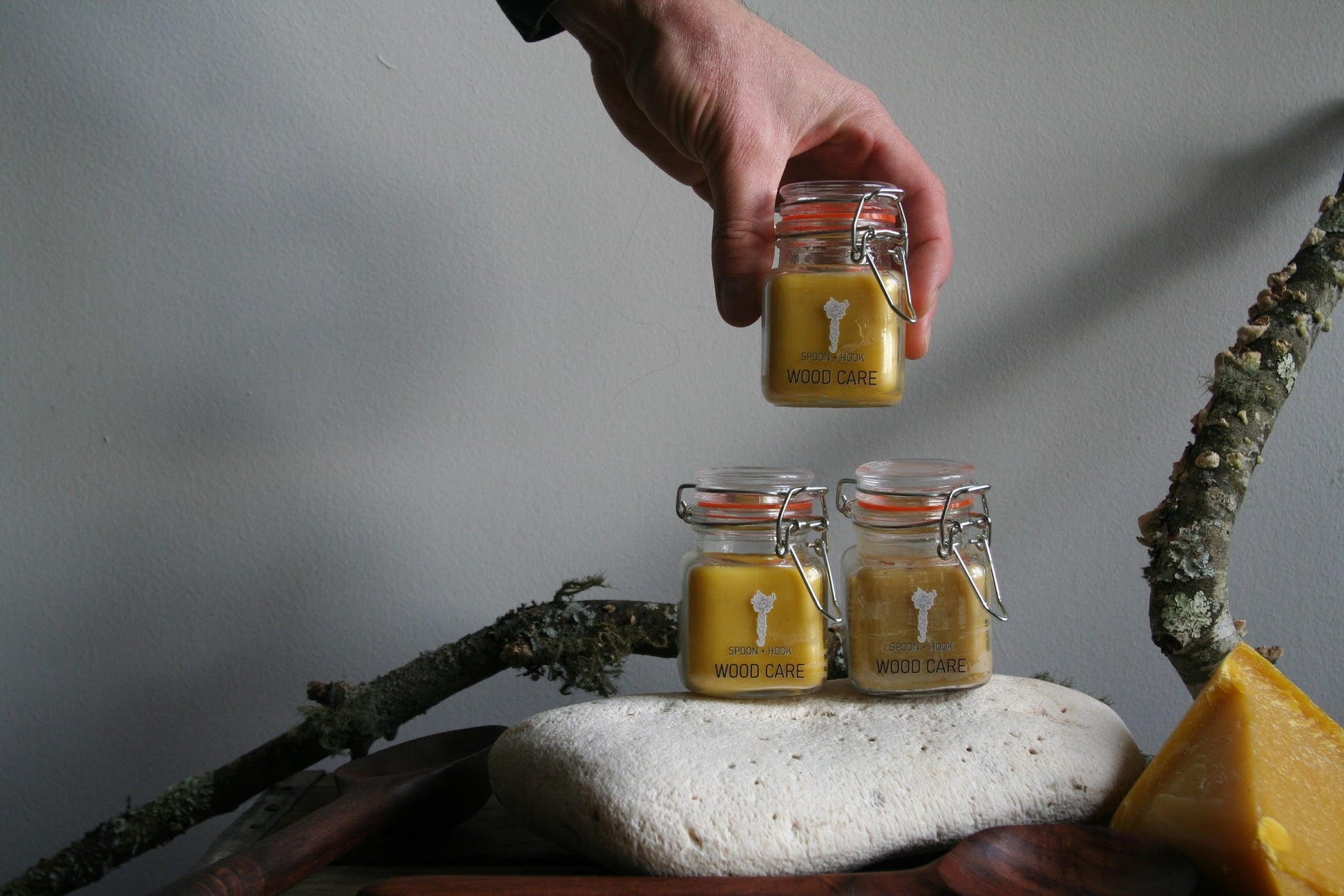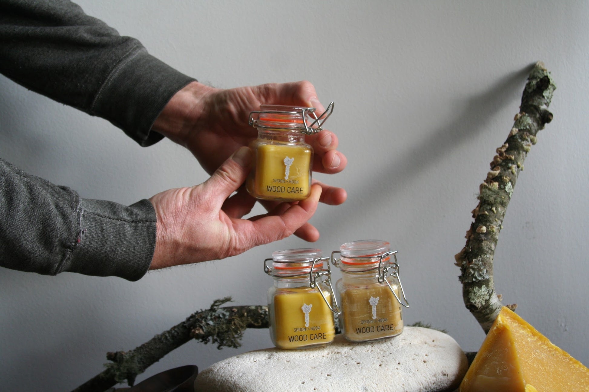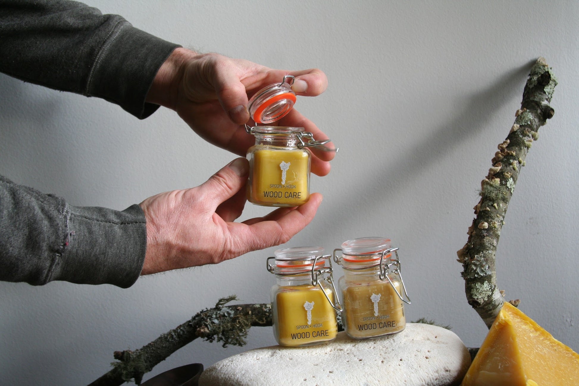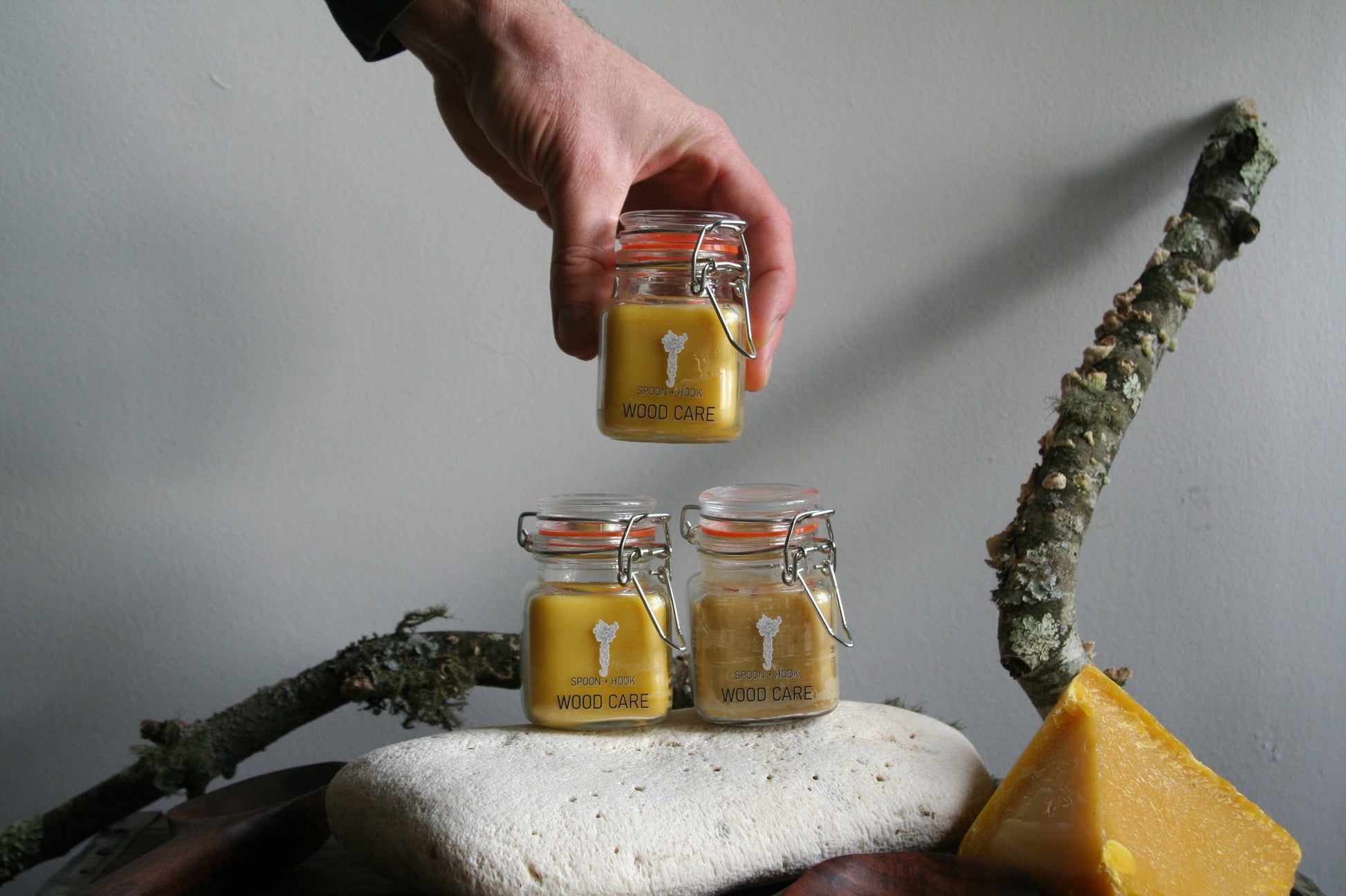 This blend of wood care is made using organic bees wax from honey + the hive, organic wild orange oil, and organic walnut oil. Note that this product may not be safe for those with serious nut allergies! To use simply press your finger into the salve and massage into your wooden wares. It is food safe and safe for skin, so any extra can be used to moisturize hands! It has a beautiful scent of bees wax and subtle orange and is safe for furniture use as well. Works best at room temperature and will set into wood in a matter of seconds.